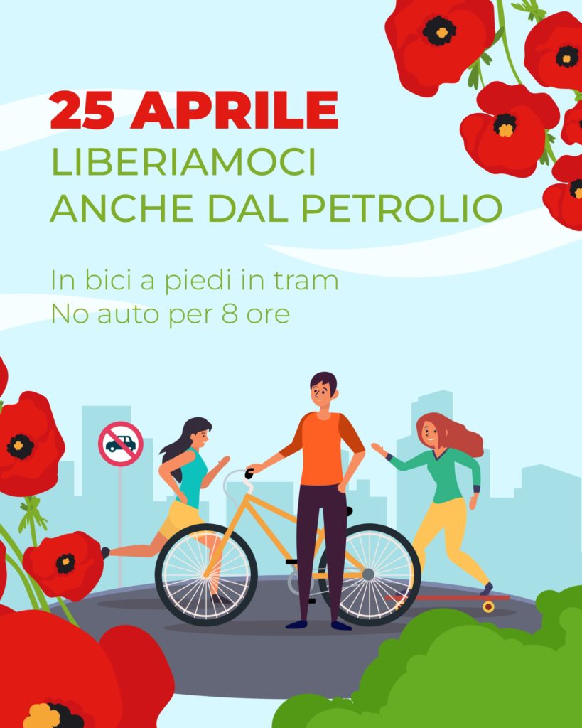25 aprile, festa della Liberazione e della necessità di liberarsi anche dal fossile. Per otto ore stop al traffico motorizzato privato in città, largo alle bici ai mezzi pubblici e naturalmente ai pedoni. Non sarebbe bello? Qualcuno l’ avrebbe già proposto, quando eravamo ambientalisti anticonsumisti… Negli ultimi e soprattutto ultimissimi anni, per resistere alle ondate populiste reazionarie, l’ambientalismo è diventato sociale.