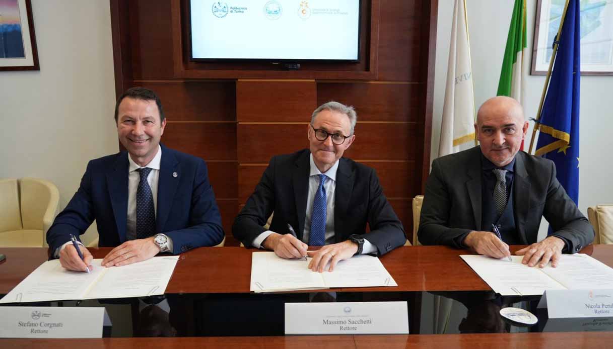 All’incontro, che si è svolto nella Sala Consiliare Giulio Goria presso l’Università di Roma “Foro Italico” erano presenti per l’Ateneo romano il rettore prof. Massimo Sacchetti, il prorettore Vicario prof. Fabio Pigozzi e la direttrice generale dott.ssa Lucia Colitti, per il Politecnico di Torino il rettore prof. Stefano Corgnati e il direttore generale dott. Vincenzo Tedesco, per l’Università di Scienze Gastronomiche il rettore prof. Nicola Perullo.
