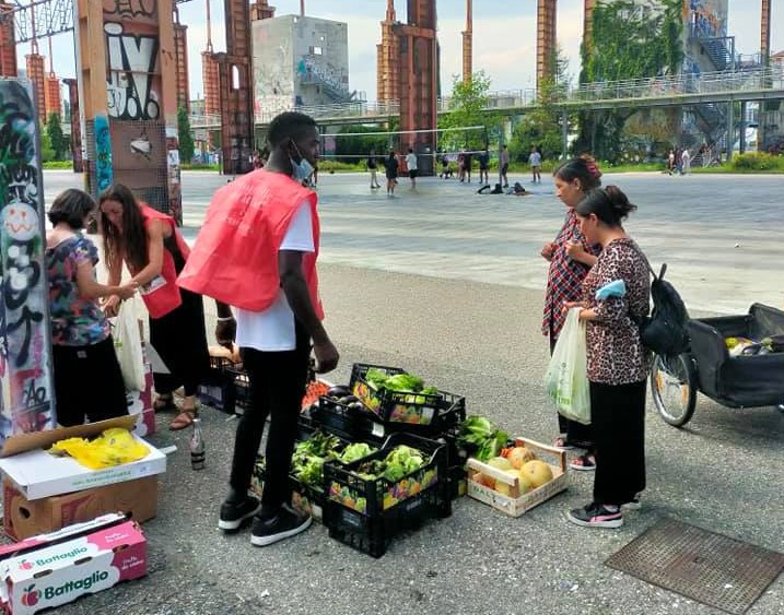 Il progetto nasce da due esigenze che attraversano Eco dalle Città in questo momento. La prima è quella di trovare persone a cui dare la frutta e verdura recuperata in un periodo dell’anno, quello di agosto, durante il quale le realtà a cui normalmente consegnamo sono chiuse. La seconda esigenza è quella di ampliare l’orizzonte del recupero oltre l’assistenzialismo, entro il quale è stato un po’ relegato anche, ma non solo, a causa della grande richiesta di aiuto presente durante il periodo della pandemia. Viene quindi l’idea di una consegna diretta, in uno spazio nuovo, differente da quello abituale dei mercati, attraversato da una grande quantità e varietà di persone, certo non tutti con il bisogno di risparmiare sulla spesa.