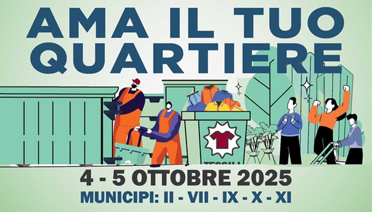 La campagna “Ama il Tuo Quartiere – Giornate del Riciclo” è in programma sabato 4 e domenica 5 ottobre 2025. L’iniziativa rappresenta un’occasione per disfarsi in maniera corretta di oggetti come legno, metallo, mobili, divani, materassi, frigoriferi, condizionatori, grandi elettrodomestici, monitor, TV, apparati elettronici, lampade al neon, batterie al piombo, toner, vernici, solventi, sfalci e potature.