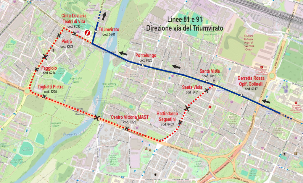 Le linee 81 e 91 effettueranno le fermate “Santa Viola” e “Pontelungo”, mentre la linea Q servirà le fermate “Santa Viola”, “Bernardi” e “Pontelungo”.