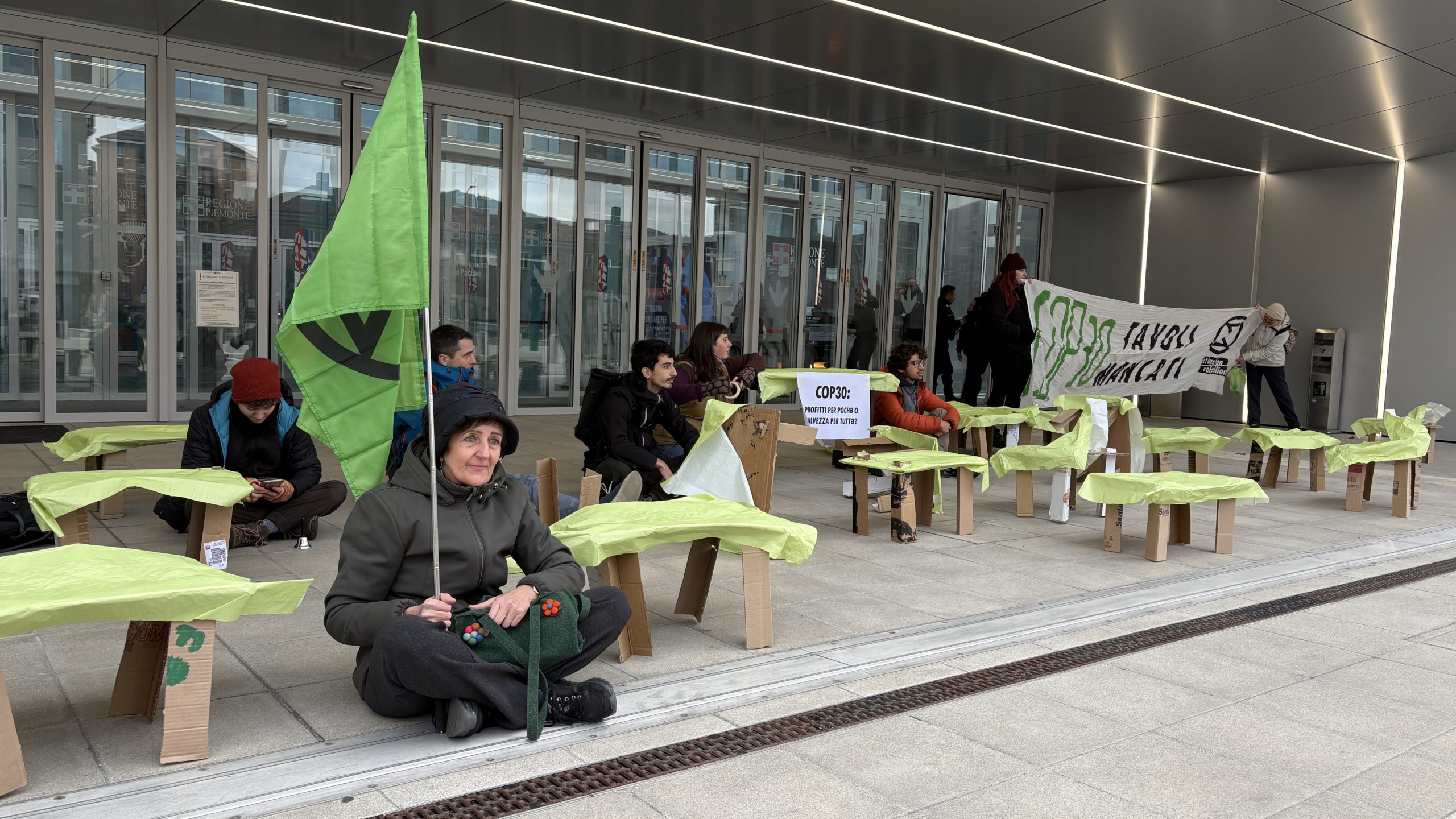 “Questi tavoli rovesciati rappresentano tutte le occasioni mancate e le promesse infrante di oltre 30 anni di conferenze per il clima, a partire dagli obiettivi falliti degli Accordi di Parigi” spiega Maria, una delle persone sul posto. “E mentre in Piemonte stiamo perdendo le nostre montagne, il Governo Italiano ha di fatto boicottato la COP di quest’anno: fisicamente e politicamente”. Il riferimento è all’assenza della presidente del Consiglio Giorgia Meloni a Belém, dove è invece intervenuto il ministro Antonio Tajiani, che ha esortato gli stati presenti ad evitare un approccio dogmatico.