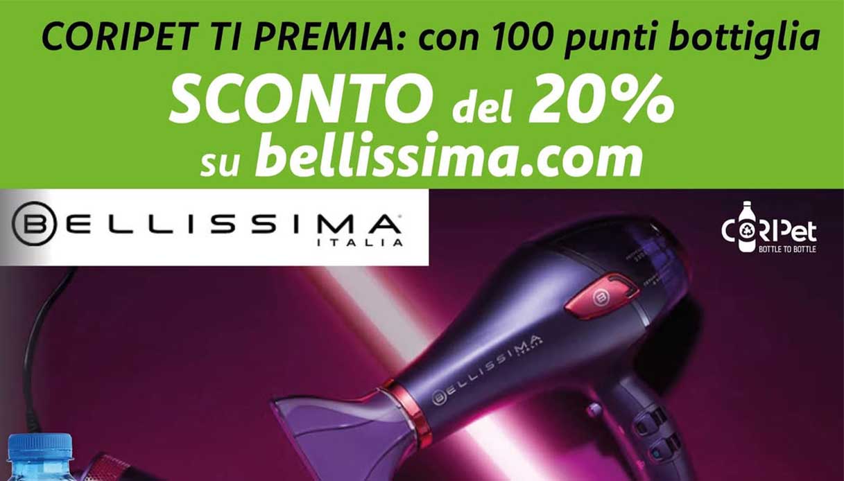 Da oggi, gli utenti iscritti al circuito Bottle to Bottle possono richiedere, con soli 100 punti bottiglia, un buono sconto del 20% per l’acquisto dei prodotti Bellissima – asciugacapelli, spazzole riscaldate, arricciacapelli e altri accessori disponibili su bellissima.com.