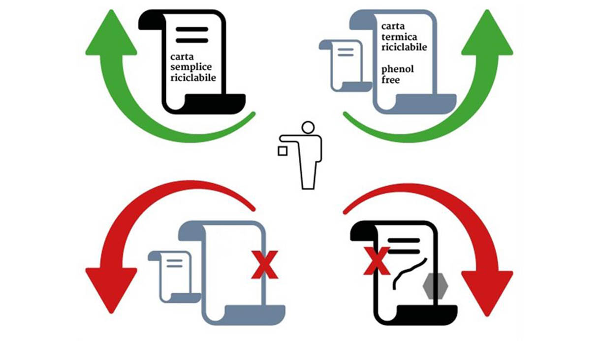 Quando la carta termica è riciclabile, sul retro dello scontrino compare chiaramente l’indicazione “va nella raccolta differenziata della carta”. La riciclabilità è inoltre certificata da un marchio riconosciuto, come Aticelca o da altri enti accreditati, che attestano l’assenza sia di BPA sia di BPS.