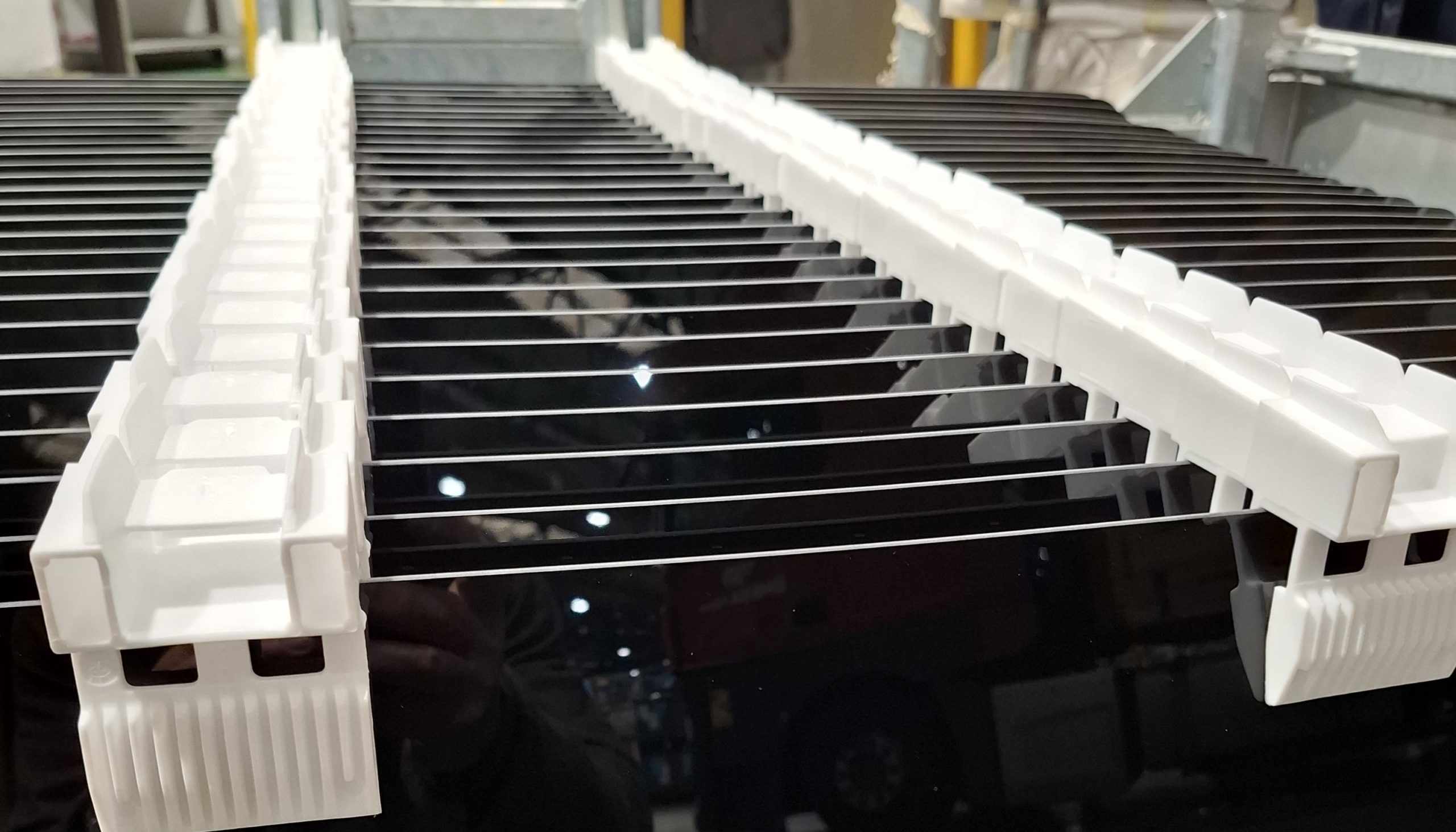 Pilkington Italia ha rivoluzionato il sistema di movimentazione dei vetri automotive introducendo il riutilizzo dei separatori in polietilene: un ciclo virtuoso che prevede il recupero, il lavaggio a ultrasuoni e il reimpiego dei blocchetti insieme ai pallet in acciaio, ridisegnati per ottimizzare gli spazi e consentire un incremento del 33% delle unità trasportate per rimorchio. Un intervento che incarna la logica “use, return, repeat”.