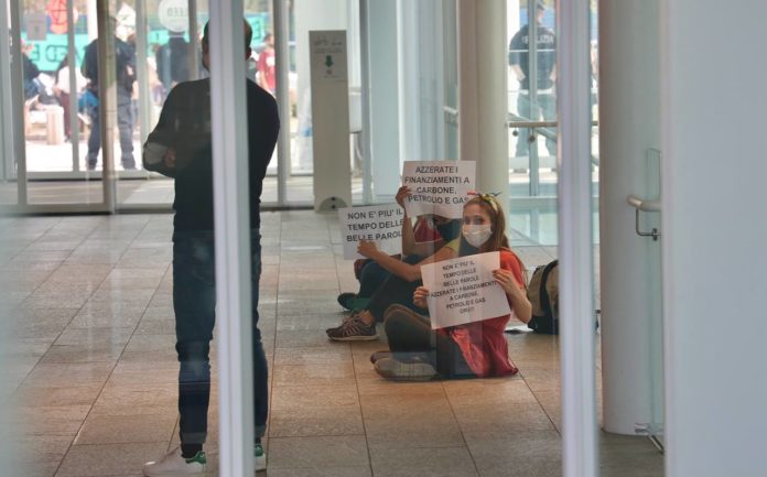 Tre attiviste di Extinction Rebellion, il movimento ambientalista internazionale, sono entrate nel grattacielo di Intesa Sanpaolo a Torino, sedendosi dentro la hall e rifiutandosi di uscire. Mentre reggono due cartelli con scritto “Io sono nonviolenta” e “Non è più il tempo delle belle parole: azzerate i finanziamenti a carbone, petrolio e gas. Ora!”, le tre attiviste intendono denunciare i continui investimenti in petrolio, carbone e gas fossile da parte di Intesa Sanpaolo. Nel frattempo, una cinquantina di attivisti continua a presidiare lo spazio esterno del grattacielo.