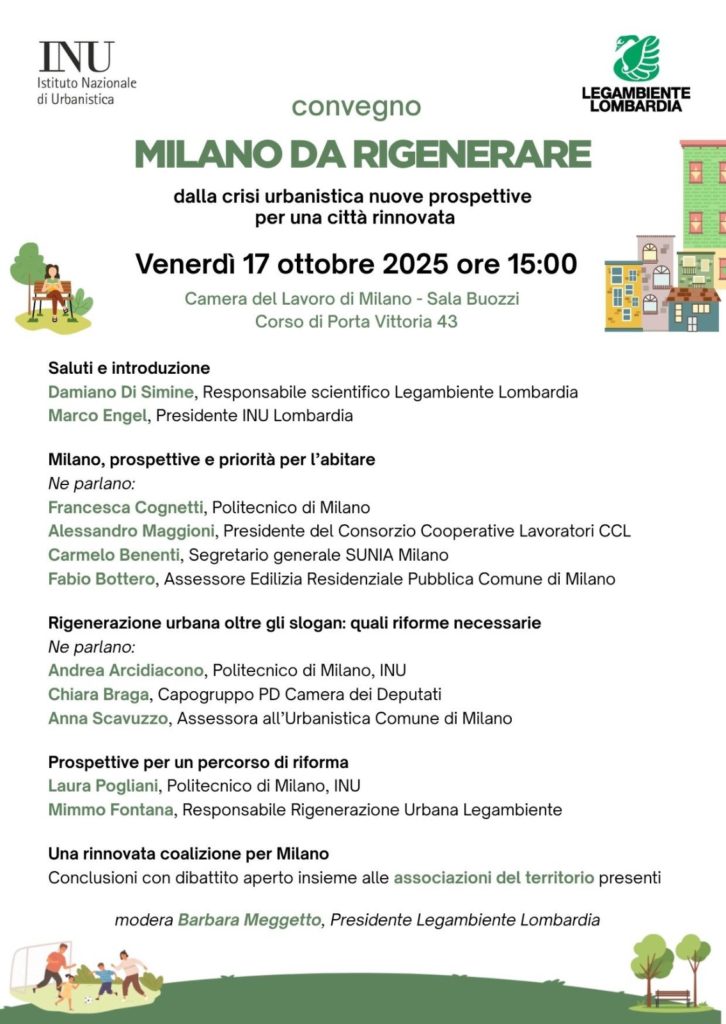 Milano da rigenerare” è il titolo del dibattito in programma venerdì 17 ottobre, dove mondo della ricerca e organizzazioni della società civile milanesi si incontrano per provare a offrire nuovi contenuti sullo sviluppo urbanistico della città. Organizzato da Legambiente Lombardia e dall’Istituto Nazionale di Urbanistica, l’obiettivo dell’iniziativa è proporre e discutere soluzioni “per il superamento della attuale crisi urbanistica milanese e l’apertura di opportunità per la città pubblica e l’abitare”.