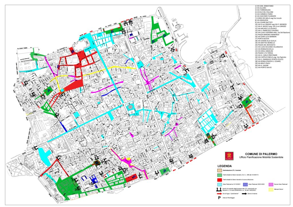 Diventano permanenti anche diverse pedonalizzazioni già attivate in forma sperimentale negli ultimi anni, in particolare nell’area della Vucciria e di piazza Caracciolo, tra cui: